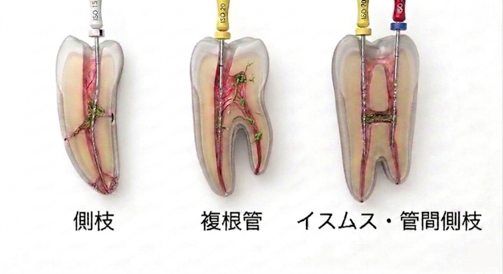 側枝・イスムスは「器具で見つけて削る」ものではなく、化学的な洗浄・消毒で細菌を制御する領域です。当院では、最新の歯内療法技術を駆使してアプローチします。