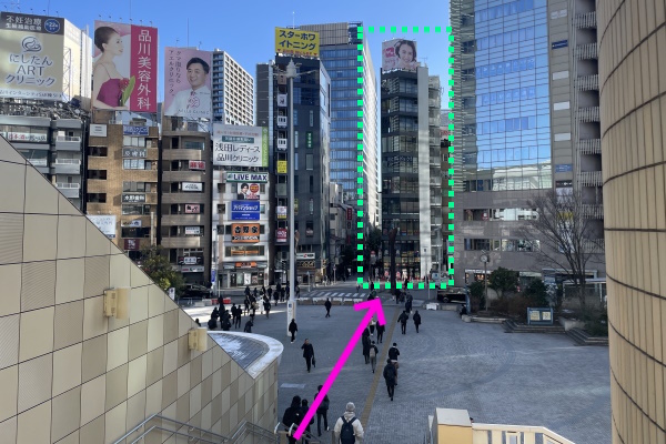 「港南口(東口)」へ進み、駅前に出ます。正面に当院のあるビルが見えます。